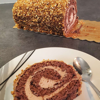 Biscuit roulé cacao et chantilly Nutella-pralin
