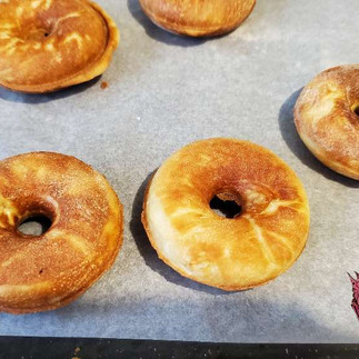 Etaler la pate sur 1 cm max d'épaisseur et à l'aide d'un emporte-pièce rond (8 cm), couper des ronds. Pour le trou du donuts, j'ai utilisé une douille de 3cm.