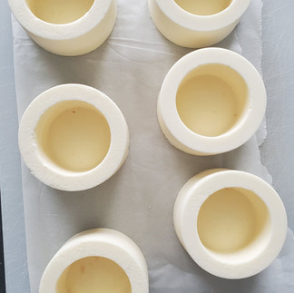 Faire la mousse bavaroise au citron, remplir les moules à l'aide d'une poche à douille, lisser le dessus et mettre une nuit au congélateur.
