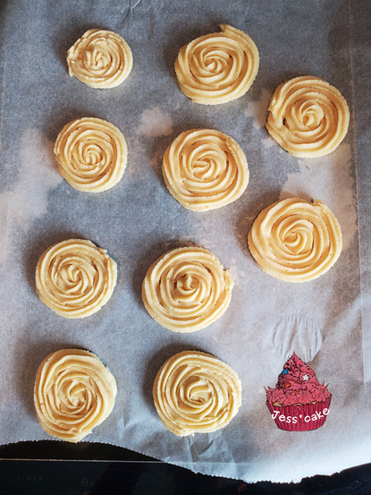 Préchauffer le four à 180°C et cuire 12 (pour les petits), 15min (pour les plus grands). Le biscuit doit être légèrement doré. (Attendre qu'ils refroidissent pour les manipuler)
